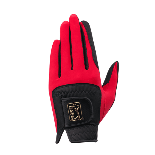 PGA men's golf elastic cloth non-slip gloves (black and red)