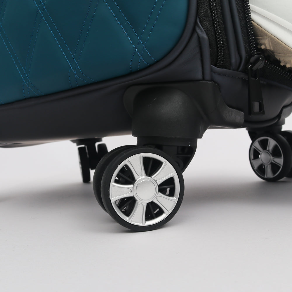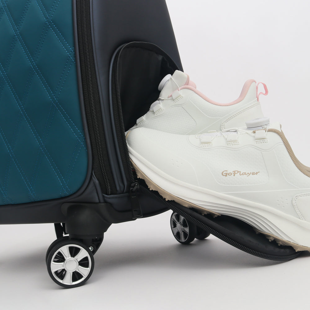 採用高質感霧感皮革打造,觸感細膩且視覺低調,即便頻繁使用也不易顯舊。袋身具備優異的支撐力,飽滿型態始終如一,展現專業運動品牌的嚴謹工藝。隱藏式拉桿設計兼顧手提及拖行需求,四輪萬向滑行讓移動更顯從容。側邊貼心設有獨立鞋袋隔層,實現鞋物徹底分離,搭配加厚舒適提把,大幅減輕手提負擔。這是一具將機能美學發揮到極致的萬用衣物袋,滿足您對細節的完美苛求。